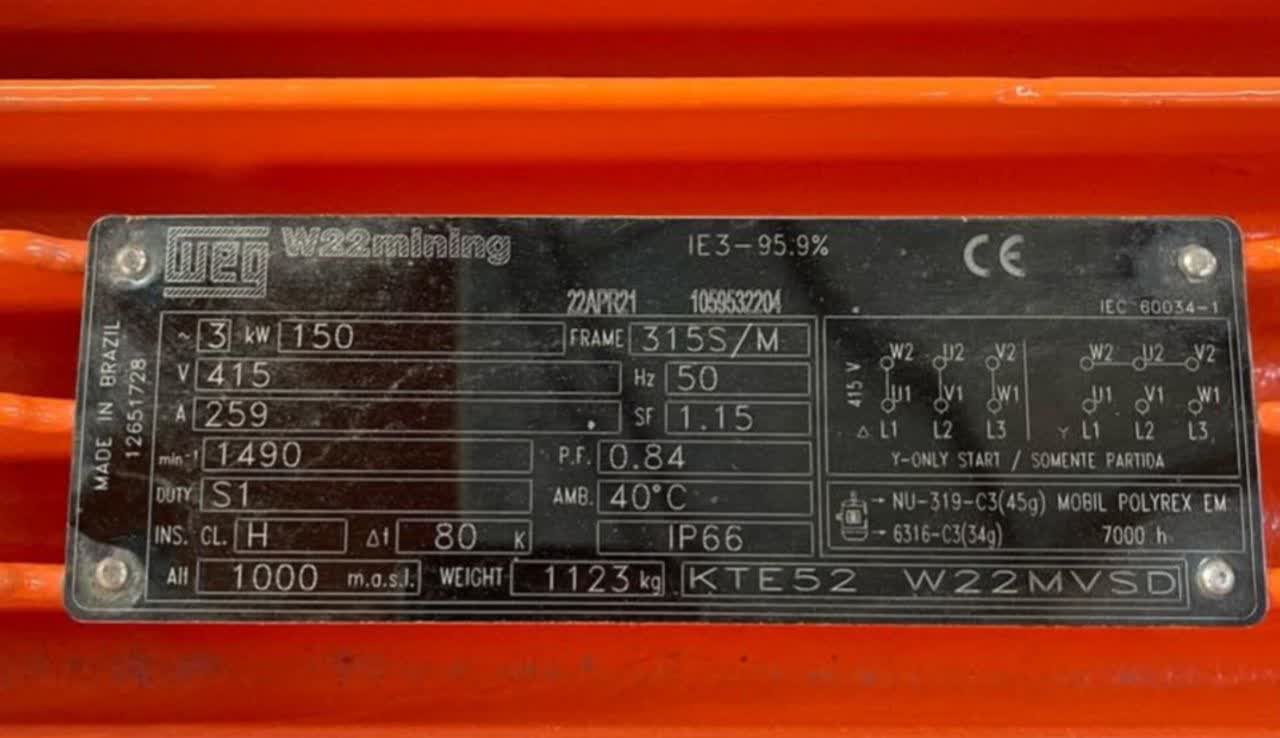 الکتروموتور 150کیلووات AC WEG مدل KTE52 W22M VSD